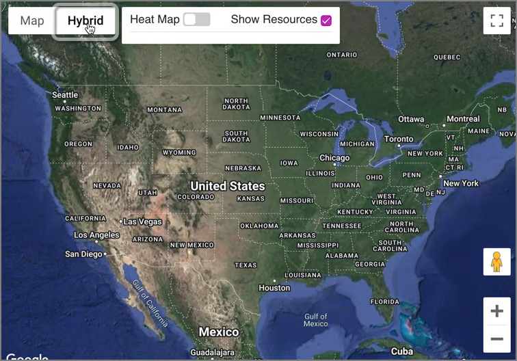Select the time period and select as many fields as you like in the search criteria. The map will usually start off with a map of the United States, which can be zoomed in to a specific city or area.